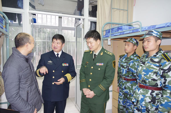 国防生代表向刘处长一行汇报了日常管理、学习和训练的相关情况,并提出了相关意见和建议。刘处长对国防生们提出的问题一一进行了解答,并要求国防生提高政治素养,勤奋学习,争做优秀国防生。刘处长一行人还走访了国防生宿舍,充分肯定了同学们良好的精神状态以及目前所取得的成绩。