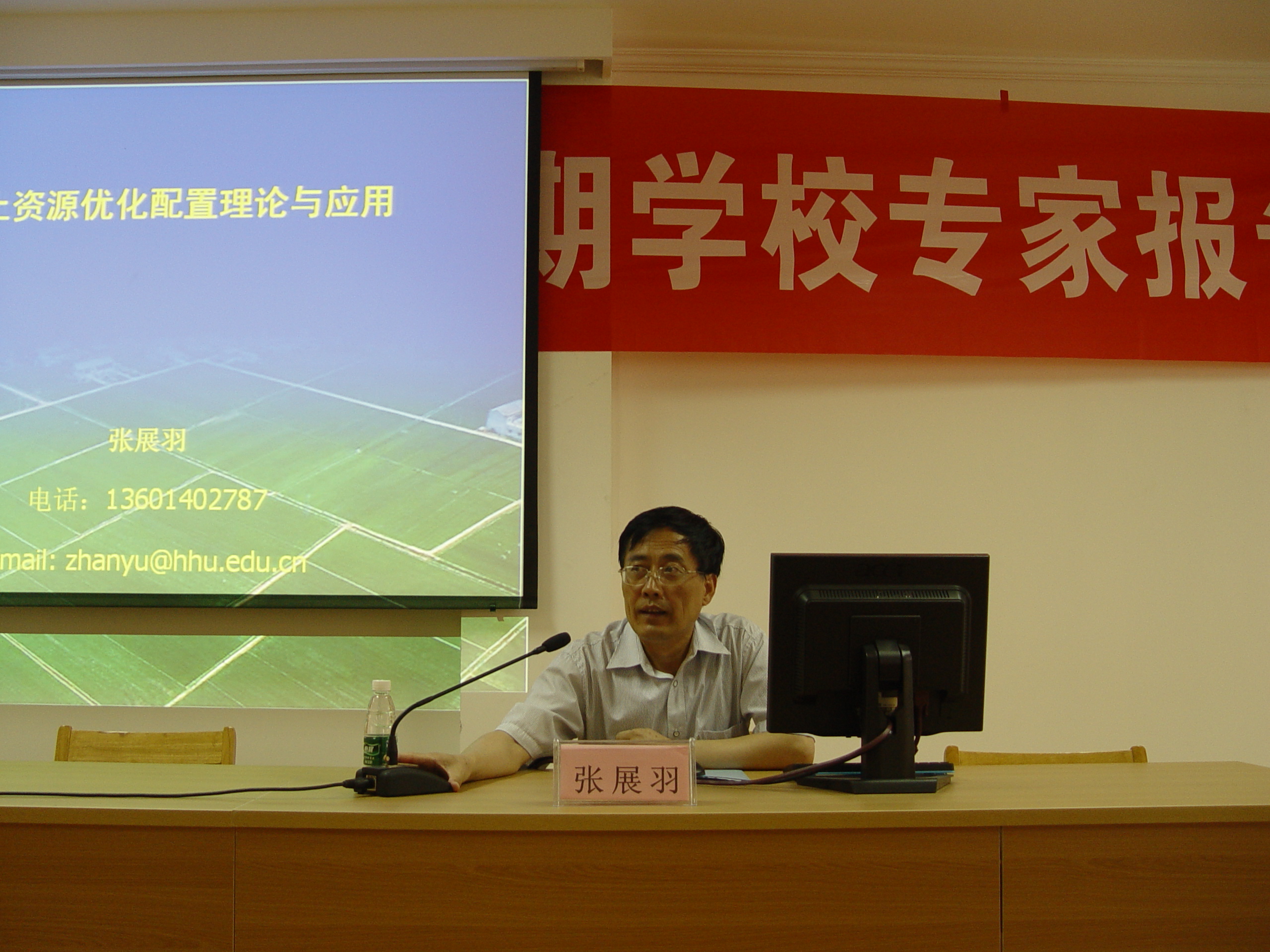 张教授的报告分四个部分。一是概述了我国水土资源的现状。他指出:我国年径流总量大但是人均、地均水量低;我国水土资源空间分布不均匀、水土资源不匹配、粮食安全和农业可供水量短缺间矛盾突出;灌区存在洪涝灾害频繁、干旱缺水且利用率不高、水环境恶化及污染、水土流失等方面的困难和问题;耕地面临质量及数量下降以及在利用与管理方面人均少、优质少、耕地后备不足、土地退化严重等问题;水土资源高效利用与保护是未来水土科研方向研究的核心,应建立抗旱抗灾、合理利用、有效保护、科学发展制度四大体系。二是讲解了水土资源优化配置理论。他首先介绍了资源生产函数、边际函数、资源生产效率函数,这三个经济学理论模型的一般型式,提出三者的最大值对应不同的横坐标,并依此分析划分了配置过程的三个阶段。三是详述了水土资源的优化配置方法。他首先介绍了水土资源现状评价、水土资源需求预测、水土资源供需分析,然后介绍了基于优化算法和SWAT模型的水土资源优化配置。他指出,基于优化算法水土资源优化配置的基本方法应包括目标函数、约束条件、求解、优化配置成果评价;而基于SWAT模型的水土资源优化配置应当按照建模、数据库搜集、参数率定及模型检验、结果输出、情景分析的步骤开展。他还提出实施方案与保障措施。四是运用理论和方法对实际应用展开分析。张教授的讲解调理清晰,他表现出的深厚的学术底蕴感染了每一位学员。