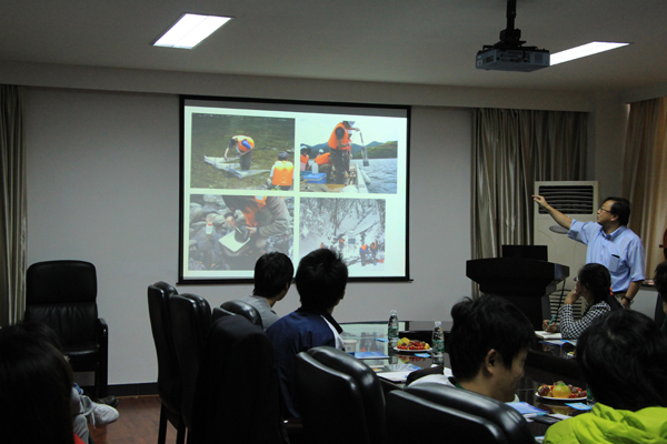 硕士研究生尹超对“微生物纳米球净化污水及水产养殖塘底泥”的相关研究作了介绍。日本国立岐阜大学李教授介绍了岐阜大学概况及所在科研团队的有关情况,并做了流域水环境方面的学术报告。双方师生针对水土环境修复和保护学术问题进行深入的交流探讨,李教授表示了进一步和av漫画