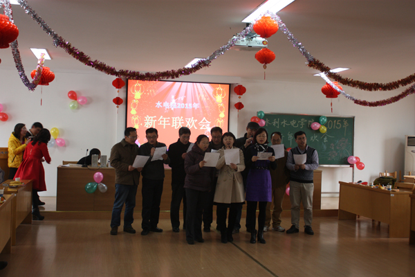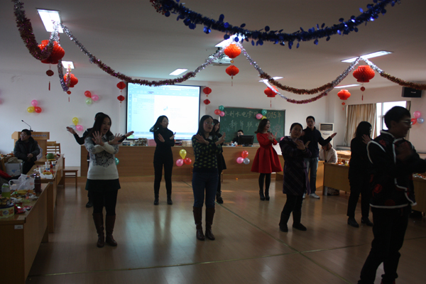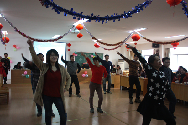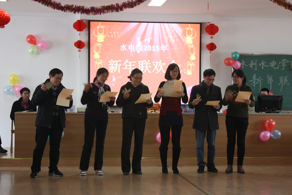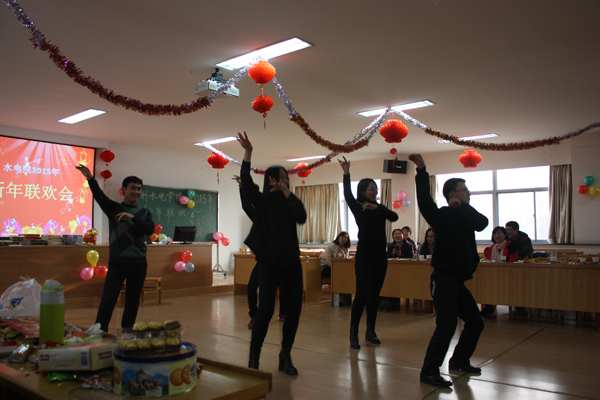 学院的女子舞蹈队的开场舞—化蝶,水工结构研究所的小快板,水力学及泥沙支部的小苹果,还有水利水电所小合唱-友谊地久天长,两办支部的手语舞—幸福的脸,让人耳目一新的是农水支部自编自导的表演唱--我的番茄是干净的把我们的联欢会推到了高潮;节目中间穿插的小游戏,让大家捧腹不止,气氛活跃。(陶艳芝)
