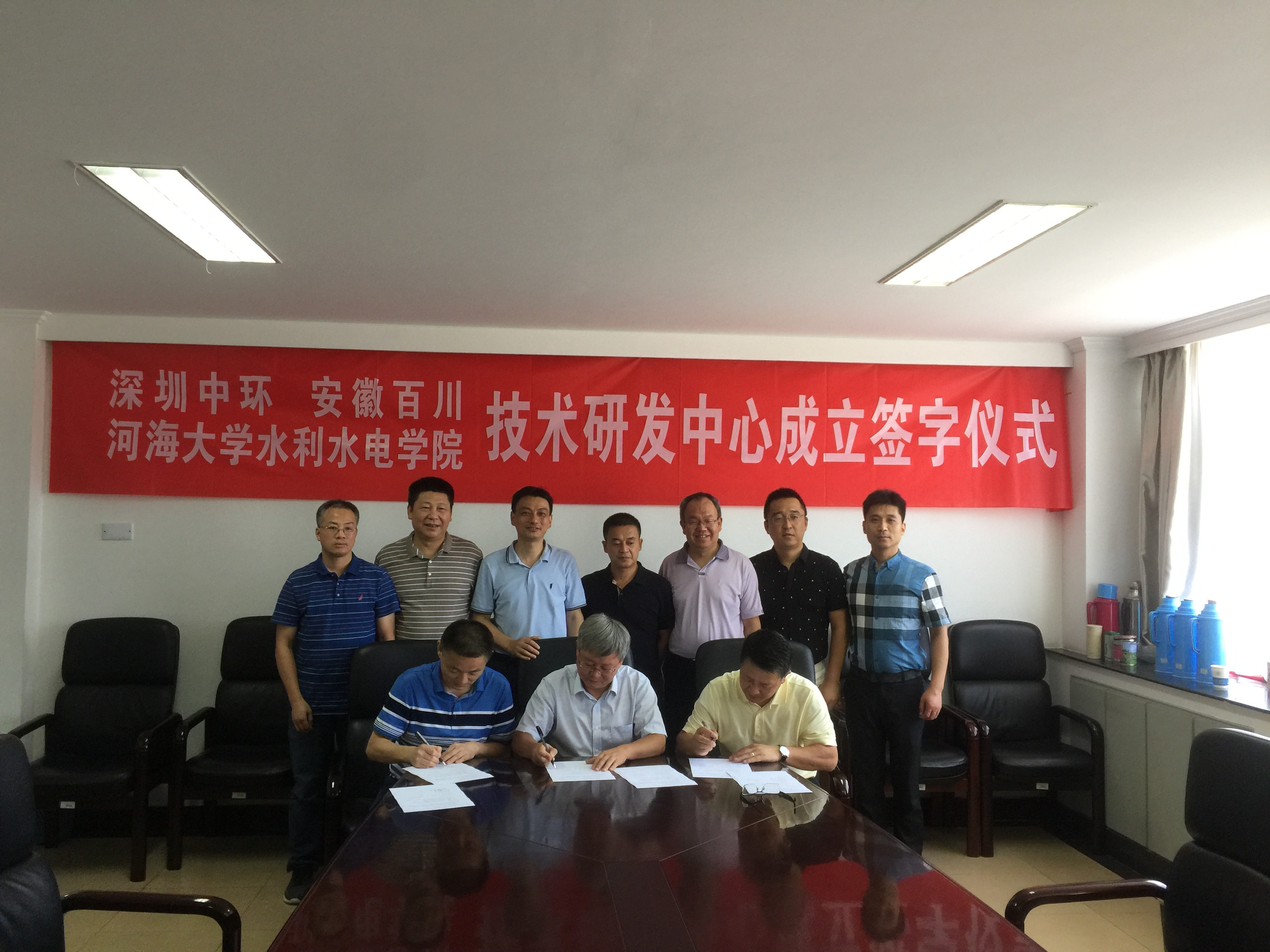 7月12日上午,深圳前海中环科技投资发展有限公司、安徽百川水利科技有限公司访问了av漫画 ,并与av漫画 院长顾冲时教授、副院长沈振中教授等就产学研合作展开了交流探讨,经过三方友好协商,达成一致,于当日上午签署了战略合作协议。协议旨在发挥各自优势,促进产-学-研的深入合作,推进高校的科研成果的转化,切实将最新的研究成果应用到实际生产活动中,同时为企业输送优秀的水利科技人才,为双方发展提供智力和技术支持。水工所副所长苏怀智教授、水力学所所长傅宗甫教授、实验中心主任田正宏教授参加了协议签署仪式。(王慧慧)