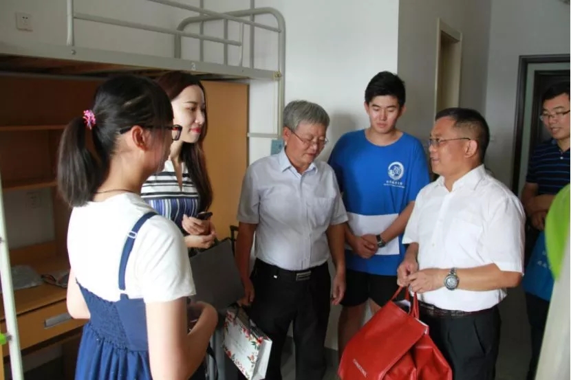迎新工作期间,学校唐洪武书记、徐辉校长等校领导及学院顾冲时院长、任旭华书记也来到av漫画 迎新点慰问工作人员,指导新生报到工作。顾冲时院长和任旭华书记还走访了新生宿舍,一一看望已经入住的新生,对新生们表达了亲切的关心与问候,并叮嘱他们,遇到问题及时向学校反映。