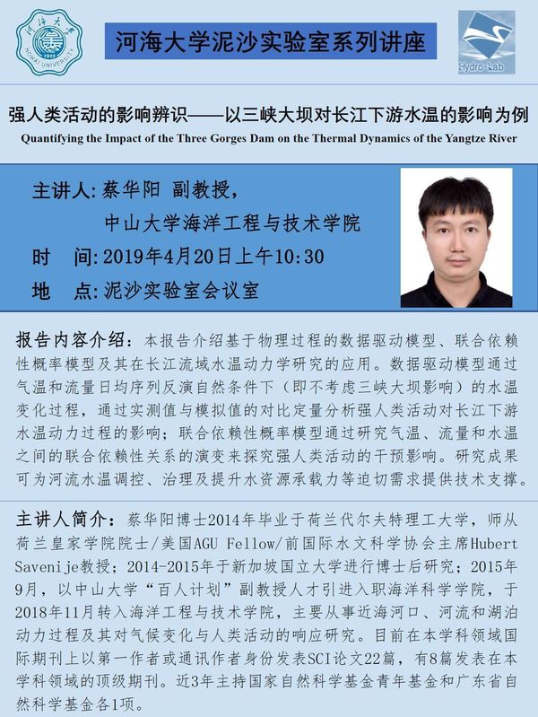 学术讲座-强人类活动的影响辨识——以三峡大坝对长江下游水温的影响为例