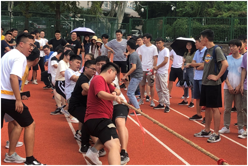 为加强同学之间交流,增强班级凝聚力,丰富同学业余生活,av漫画 于2019年9月12日在av漫画 本部足球场成功举办2019级新生拔河比赛。此次拔河比赛共有八支队伍参加,每支队伍由十名男生和两名女生组成。