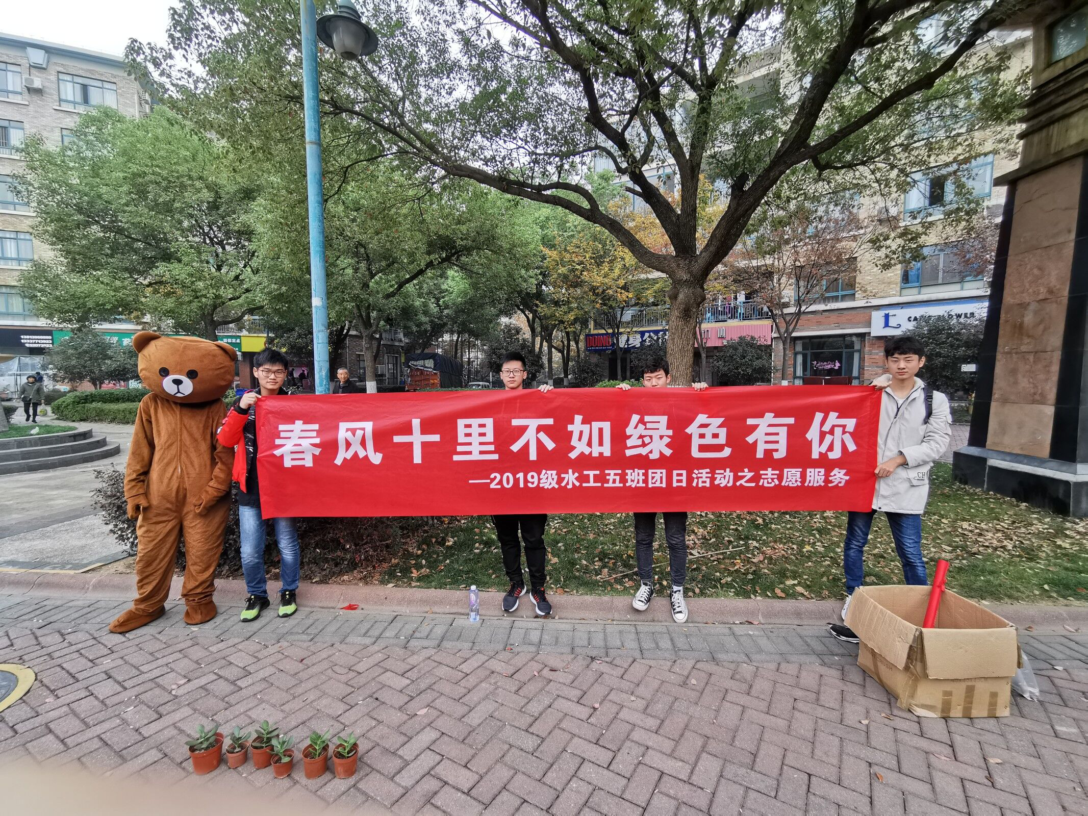 为了鼓励群众养成绿色低碳生活的习惯,感受大自然中绿色的美丽,每天拥有绿色好心情。1125日下午2:00,在2019级水工5班班长宋楠的带领下,班级同学们前往翠屏国际城小区开展团日活动之春风十里不如绿色有你”绿植领养活动
