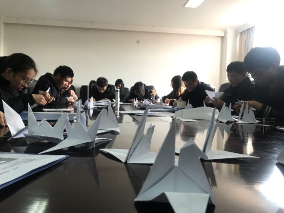 学生放置纸鹤                      学生折纸鹤