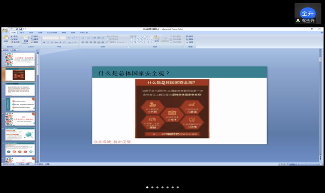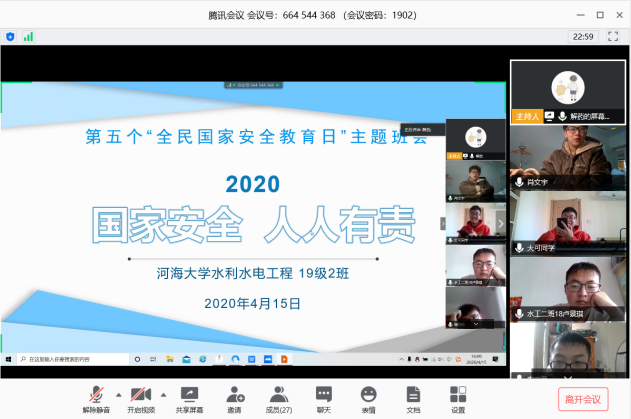 为提高大学生对国家安全的认识,建立一套理性的,符合时代特征和国家需求的教育框架,进而准确全面认识国家安全问题,树立正确的国家利益观。av漫画 2019级的同学们以班级为单位,于2020年4月15日在线上开展了“同上一堂国家安全教育课”主题云班会,一起交流分享观看“同上一堂国家安全教育课”的感悟。