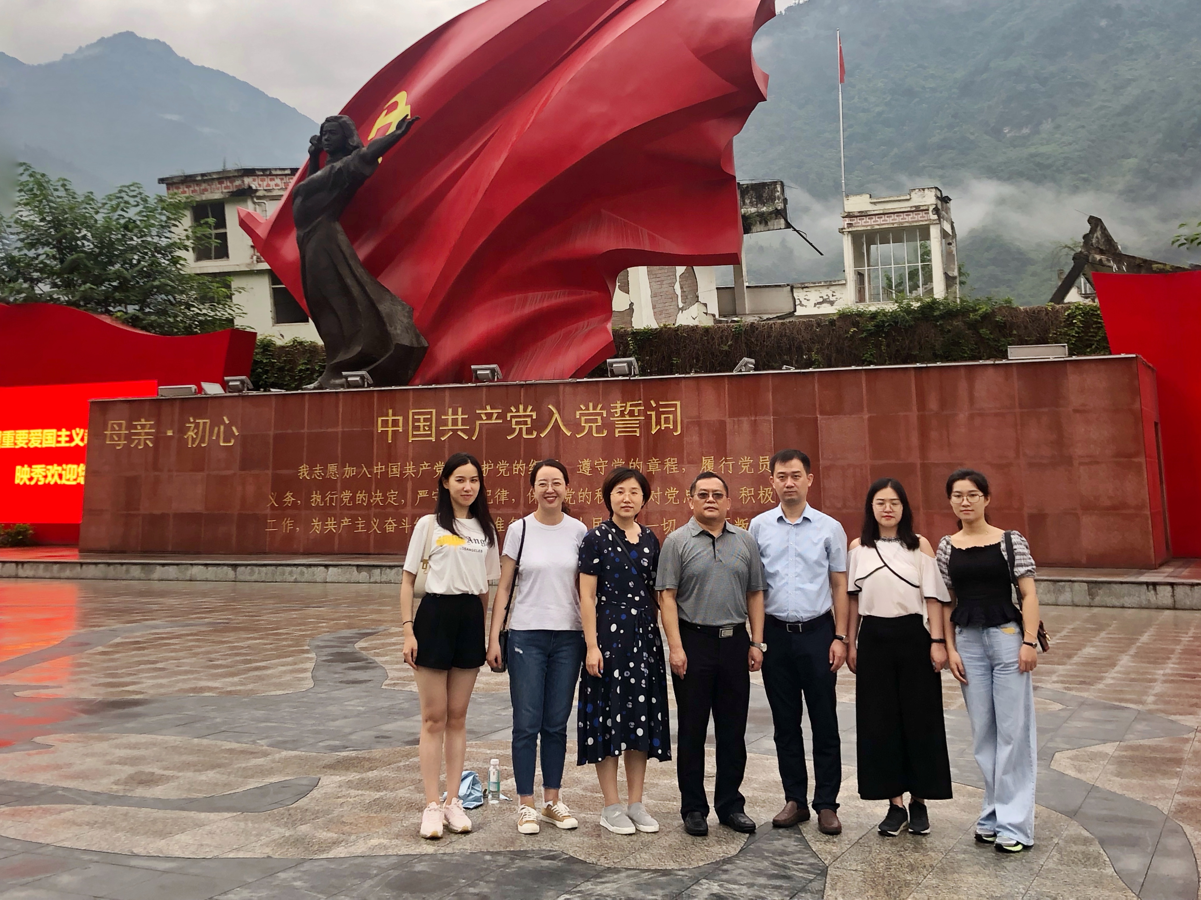 在汶川特大地震漩口中学遗址,满目疮痍、残垣断壁的惨烈景象触目惊心。支部成员参观了汶川特大地震映秀震中纪念馆,感受到十二年前中国人民气壮山河的生死营救、感天动地的举国驰援,同时被中国人民自强不息、团结奋斗的精神深深鼓舞。