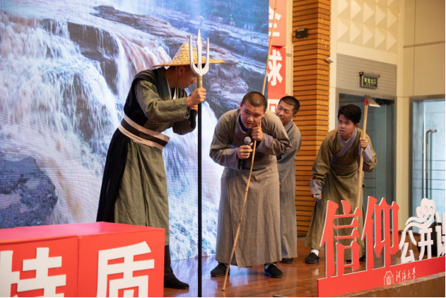 同学们以大禹三过家门而不入为蓝本,用话剧形式演绎大禹治水的艰辛过程,彰显民为邦本,公而忘私,创新求知的大禹精神。四位同学为我们带来“江河安澜——水利人在路上”诗朗诵表演。他们真挚的誓言中蕴含的是对河海的热爱,对av漫画 的热爱以及将自己奉献给水利事业的坚定信念与决心。