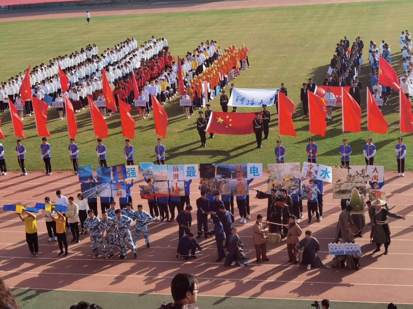 由2020级本科生组成的60人方队圆满完成训练任务,此次方阵以中国水利发展史为主线,分为大禹治水、李冰父子、红旗通渠、抗洪工程、智慧水利五大主题,充分展现了av漫画 与祖国时代共同前进的信念。同学们身着精心设计的服装,展示了从大禹治水以救黎明百姓,到李冰父子大筑都江堰工程治水,再到人工铸造红旗渠以抗干旱,走过全民抗洪见证国人众志成城,如今全新的智慧水利模式正掀起新时代的水利浪潮,智慧治水将助力国家发展新未来。此次活动展现了新时代水利人传承华夏水利事业的坚定决心,与发展信息化智慧治水新未来的创新意识,凸显av漫画 学子良好的精神风貌和敢为人先的意志品质。