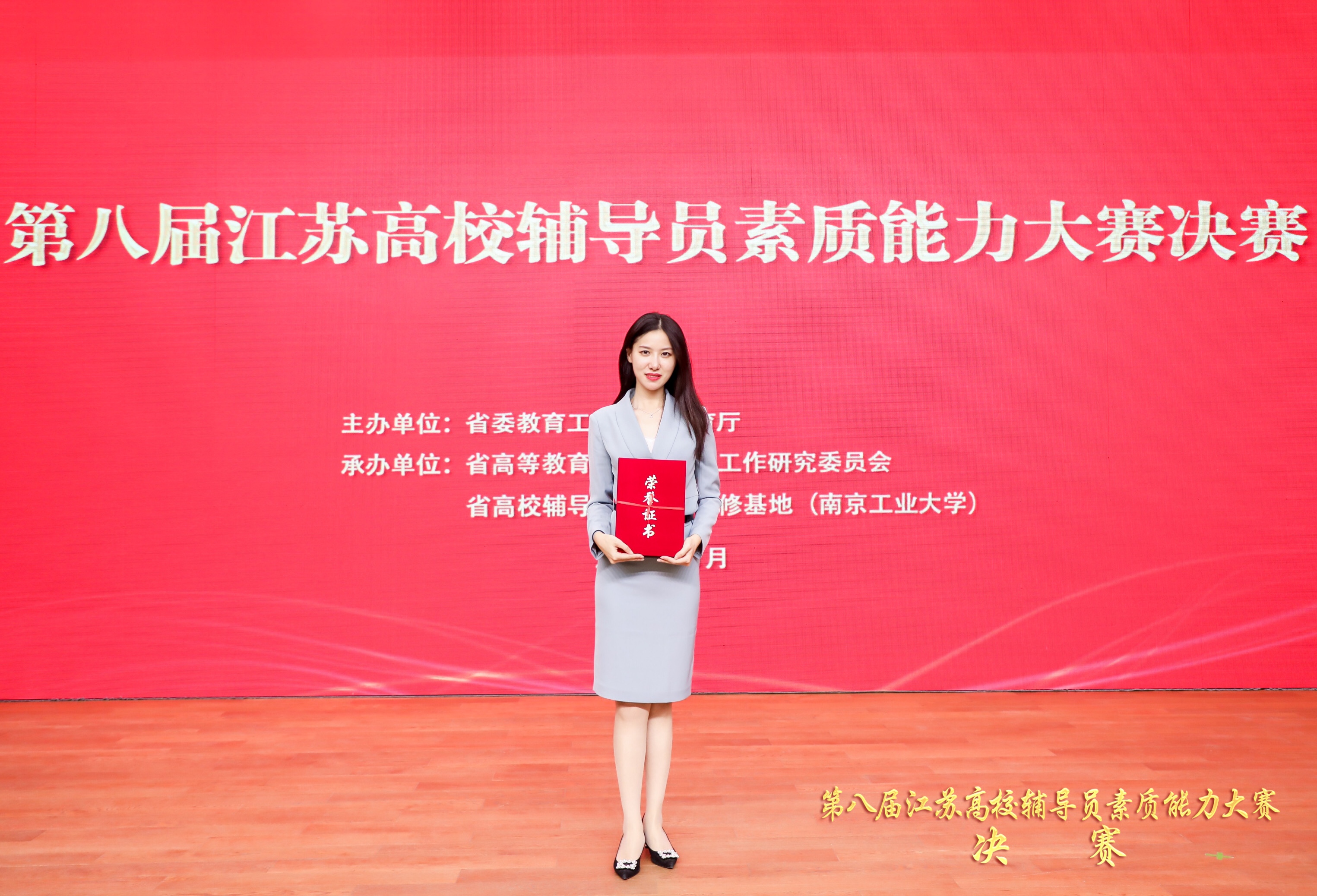 11月27日至28日,第八届江苏高校辅导员素质能力大赛决赛在南京工业大学成功举办。av漫画 2018级辅导员姜帆老师,与来自全省40所高校的优秀辅导员同台竞技、尽展风华,以总分第二的好成绩荣获一等奖!