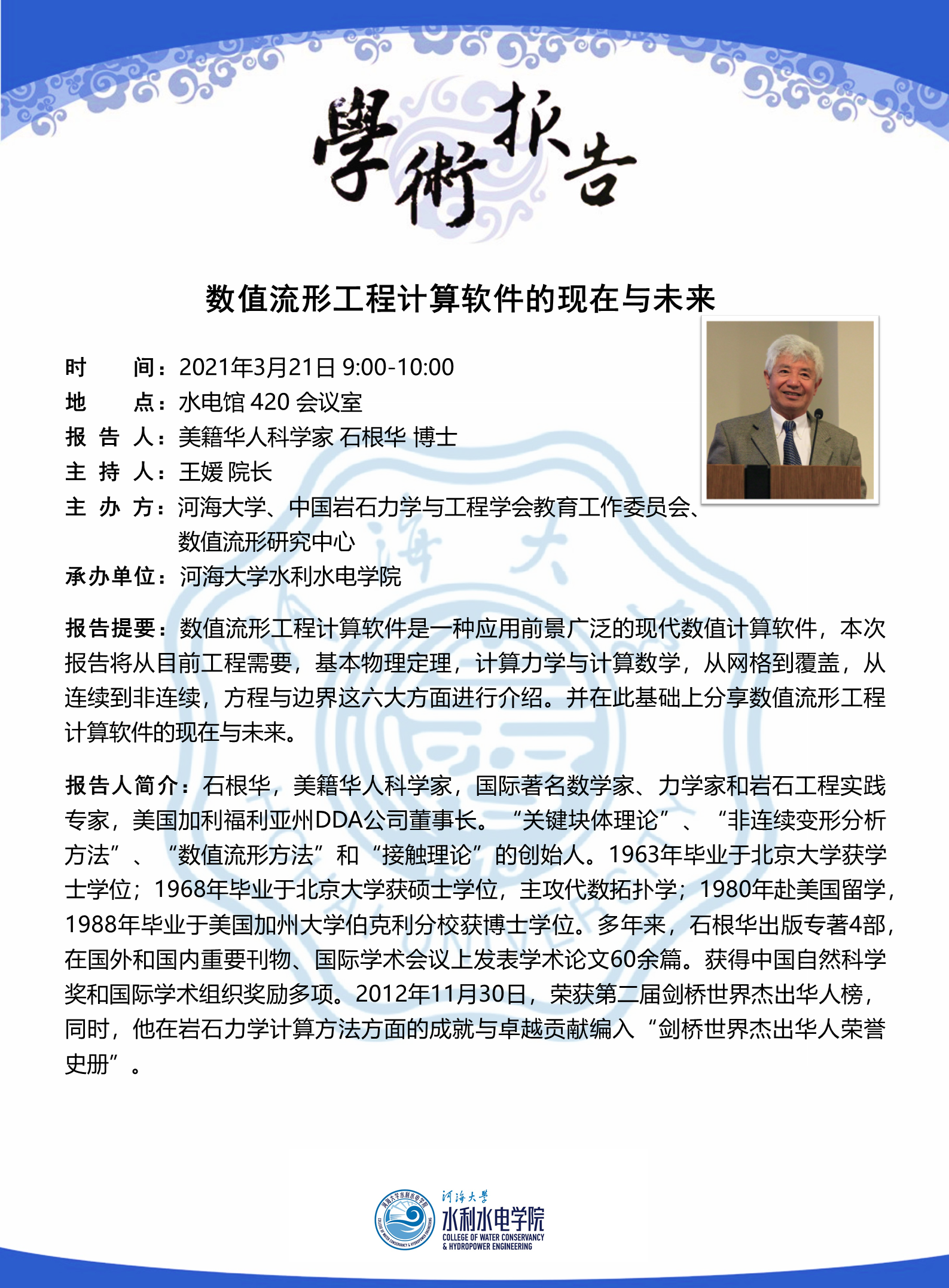 美籍华人科学家石根华博士学术报告:数值流形工程计算软件的现在与未来