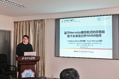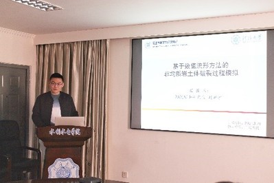 此外,av漫画 罗玉龙教授、孙洪广教授、林继教授分别介绍了在潜蚀机理、分数阶导数模型和无网格方法等领域的最新研究进展与研究成果。上海交通大学的董义佳博士后、av漫画 的周凌峰博士研究生和刘新宇硕士研究生也分别介绍了各自在近场动力学、数值流形方法等数值领域的研究成果。