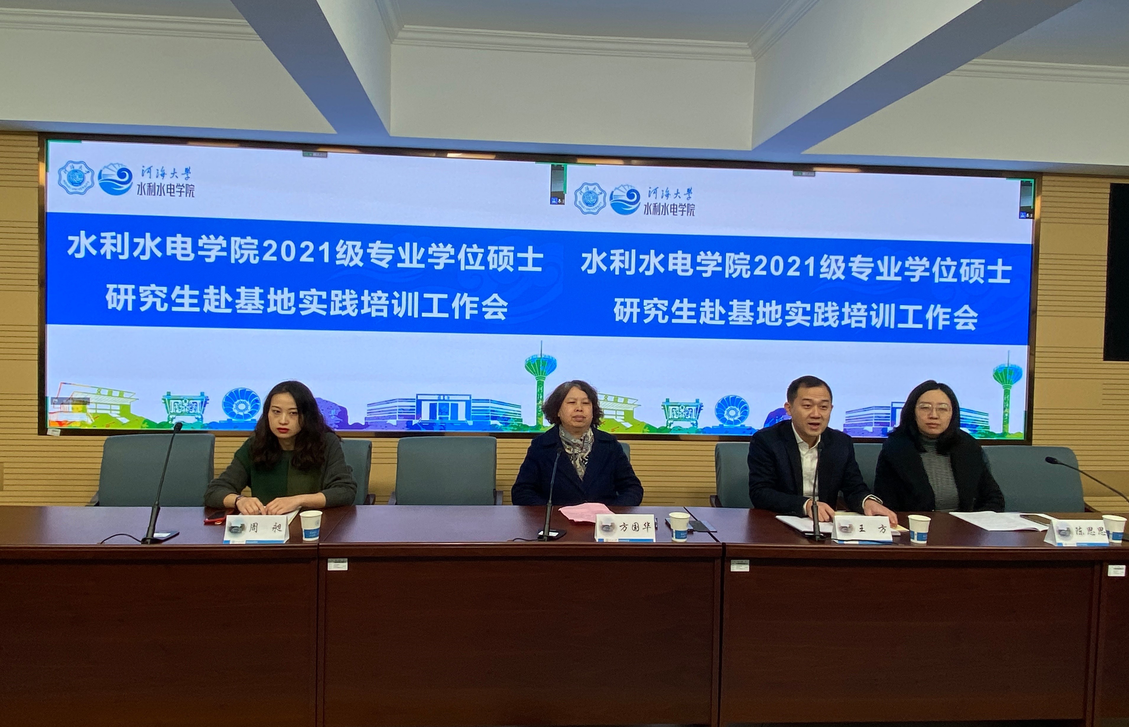 1月11日,av漫画 召开2021级专业学位硕士研究生赴基地实践培训会,副院长方国华、党委副书记王方、教学秘书周昶、研究生辅导员陈思思及2021级专业硕士研究生在线上线下参加此次培训工作会。会议由王方副书记主持。