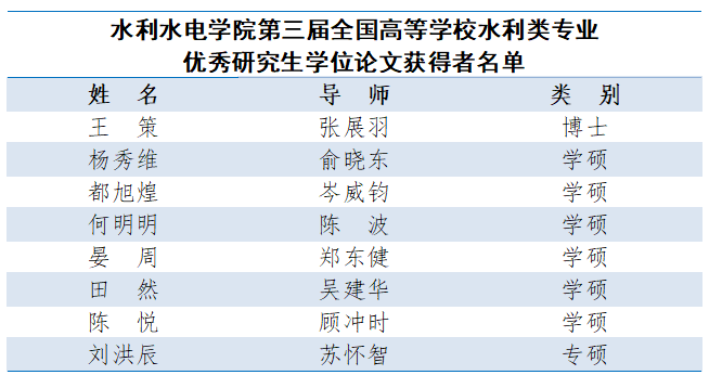日前,中国水利教育协会公布了第三届全国高等学校水利类专业优秀研究生学位论文评选结果。经协会初审、通讯评审和专家会评,评出第三届全国高等学校水利类专业优秀研究生学位论文。其中,博士学位论文10篇、学术型硕士学位论文30篇、专业硕士学位论文20篇。av漫画 王策等8名研究生的学位论文获此殊荣。