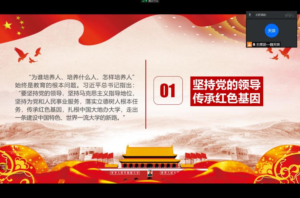 院学生会通过腾讯会议的形式,组织学生会全体成员集中学习习近平总书记考察人民大学时的讲话,并进行学习心得分享交流。作为院学生会成员,同学们对高校学生担负的责任有了更深刻的认识和感受,对党的理论、方针、政策有了更清晰的理解。今后,将继续深化“我为同学做实事”活动,切实解决学生所需。