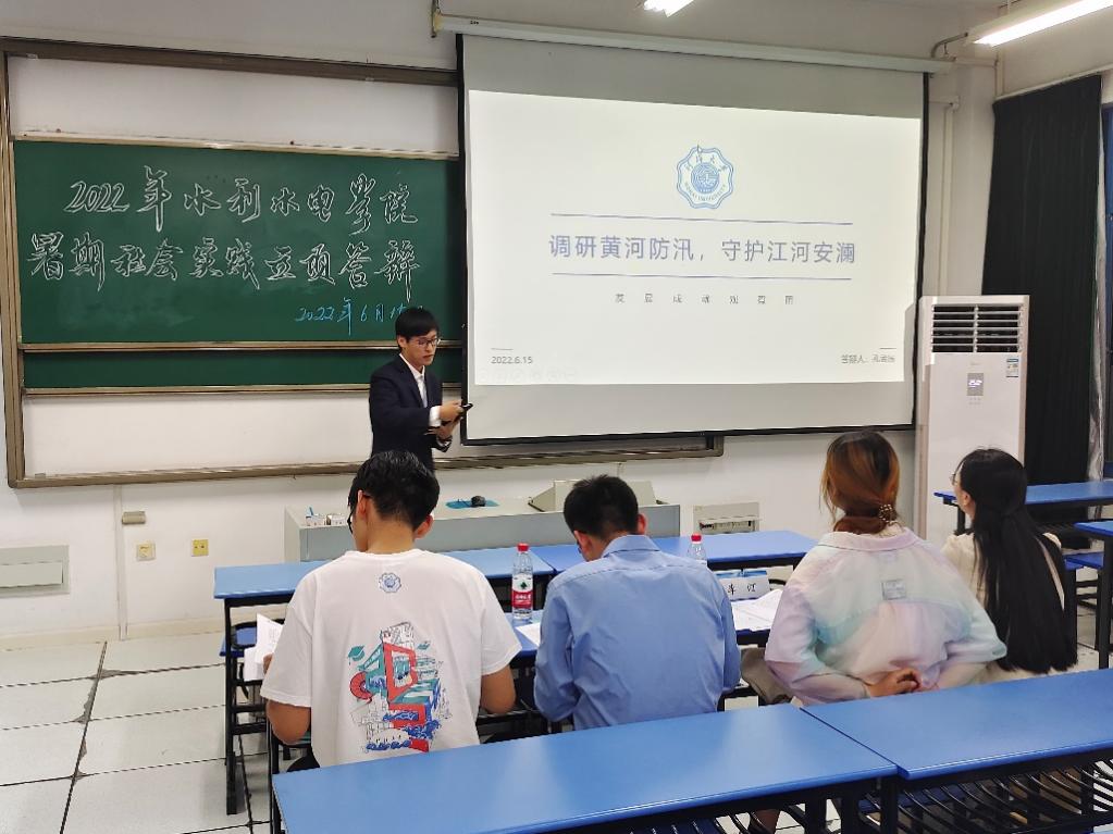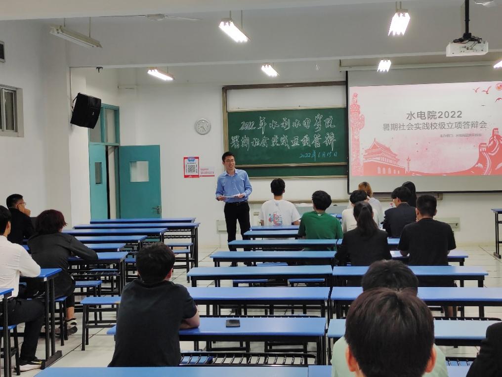 2022年6月15日,av漫画 团委于励学楼A205举办2022年暑期社会实践校级立项答辩会。学院2021级辅导员侯开智老师,2020级辅导员梁培德老师、校科协主席团李汀、李冰逸同学担任此次答辩评委,答辩会由院团委实践部张荣翔同学主持。本次答辩会学院共计12支实践队伍参与答辩,实践主题涵盖南水北调调研、发展成就观察、乡村振兴、党史学习实践等多个主题,二十余位同学参与。