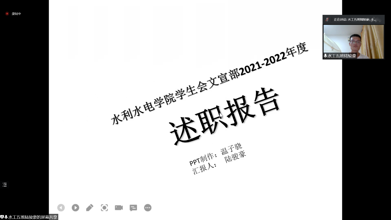 文宣部陆骏豪同学展示了文宣部同学们制作的各种海报、邀请函,拍摄的各类照片和绘制的板报,充分表现了文宣部参与学生会各种活动的前期宣传、现场记录和后期完结的全过程。