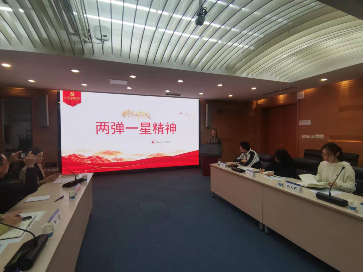 共建仪式后,双方开展联学活动。校办青年理论学习小组王晶晶同志讲授专题党课《“两弹一星”精神》,重点介绍了“两弹一星”的研发背景及过程、“两弹一星”精神的内涵及价值。“两弹一星”精神生动体现了中国人民自立自强、在举国体制下集中力量从事科技研发并创造奇迹的态度与过程,作为中国共产党人精神谱系中的璀璨一员,“两弹一星”精神已凝结为一种自强不息、奋斗不止的民族品格,成为激励青年党员不断奋进的强大精神动力。