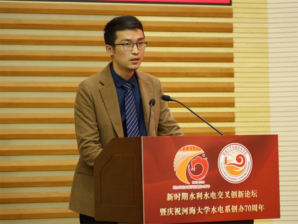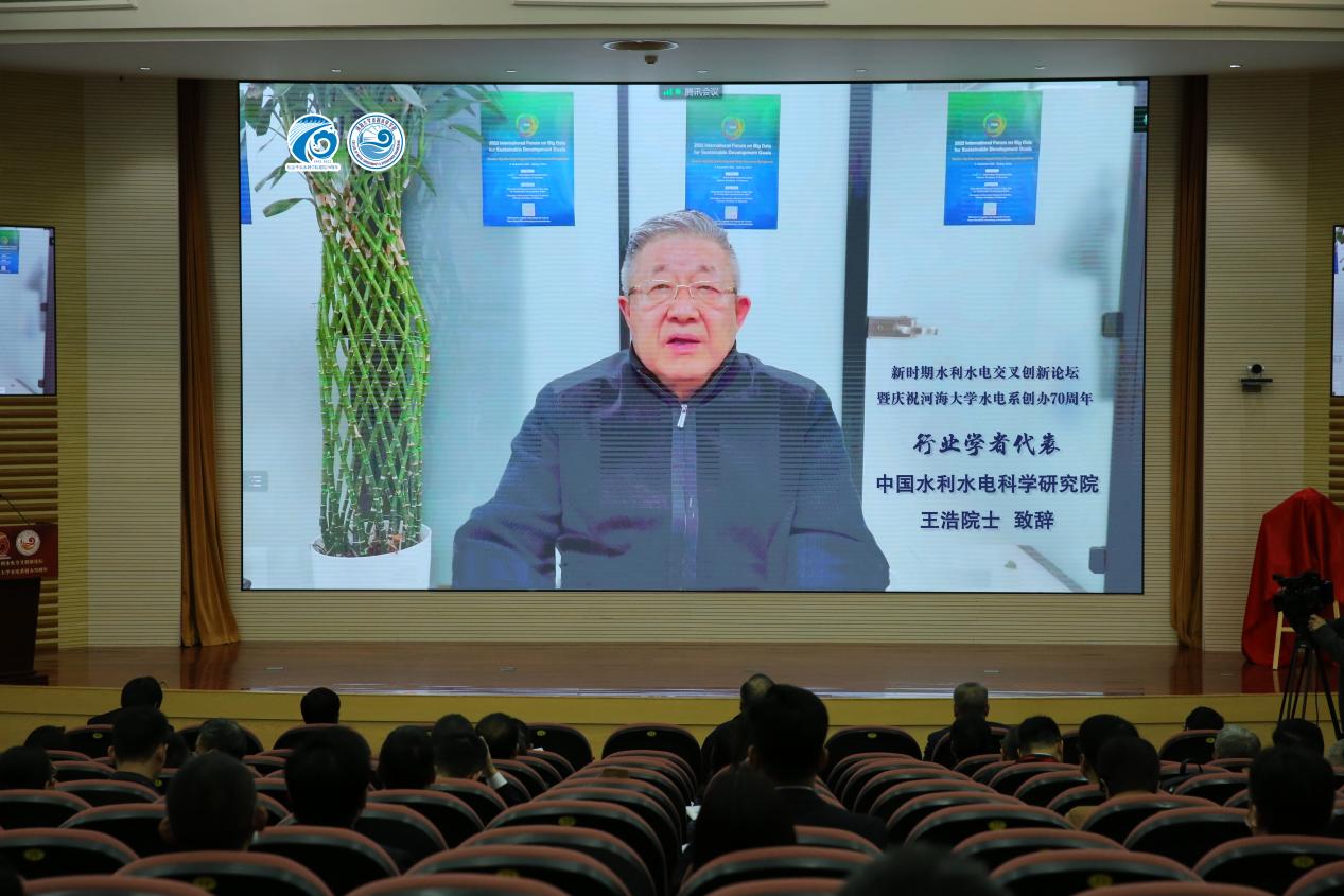 11月26日,新时期水利水电交叉创新论坛暨庆祝av漫画 水电系创办70周年大会在闻天馆108举行。中国工程院院士、av漫画 党委书记唐洪武,中国工程院马洪琪院士、王浩院士、王超院士、胡春宏院士、邓铭江院士、中国科学院王光谦院士、av漫画 校长徐辉出席大会。江苏省水利厅原一级巡视员叶健、av漫画 原校长姜弘道、常务副校长李俊杰、党委副书记郭继超、副校长郑金海、中国水力发电工程学会副理事长朱跃龙、清华大学土木水利学院书记傅旭东,兄弟高校、科研院所、行业单位、海内外校友、校内职能部门及兄弟学院主要负责人、学院师生以线上线下相结合的方式参加了本次大会。大会由av漫画 党委书记娄健主持。