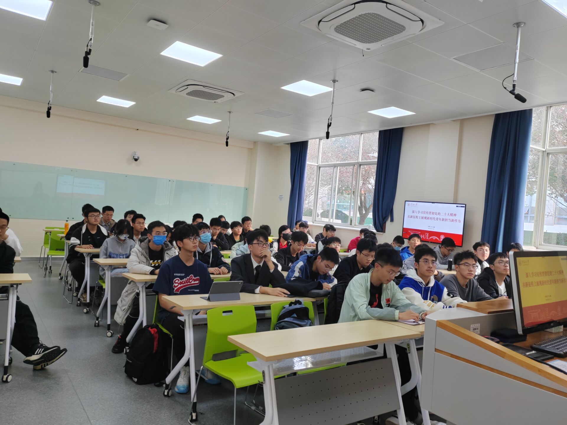 姜帆老师向大家介绍了中国共产党第二十次全国代表大会的基本情况,她就党的二十大主题的内涵做了深入阐释,从举什么旗、走什么路、坚持什么样的行动指南、传承什么样的精神法宝、以什么样的精神状态、朝着什么样的目标前进等几个问题出发,解读了二十大主题的精神内涵和深邃意蕴。她以从十八大以来av漫画 在中国水利中做出的贡献为例,强调了高举中国特色社会主义伟大旗帜的重要意义。她从新时代10年的伟大变革出发,阐明了中国特色社会主义道路的重要性与必要性,强调了河海作为“红帽子大学”,始终坚守着爱国爱水的家国本色,矢志不渝的培养拥有家国情怀、河海特色的新时代水利人。