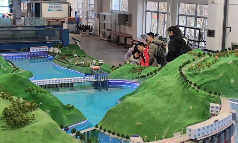会谈交流后,实践团参观了av漫画 实验教学与创新实践中心,初文婷老师详细讲解了大坝沙盘模型的构造布局,并介绍学院现有实验室资源,包括水工结构实验室、工程力学实验室、泥沙实验室等8个大规模科研实验室,保障学生良好的科创环境,并在实验教学、支撑重大科研项目有着重要作用。