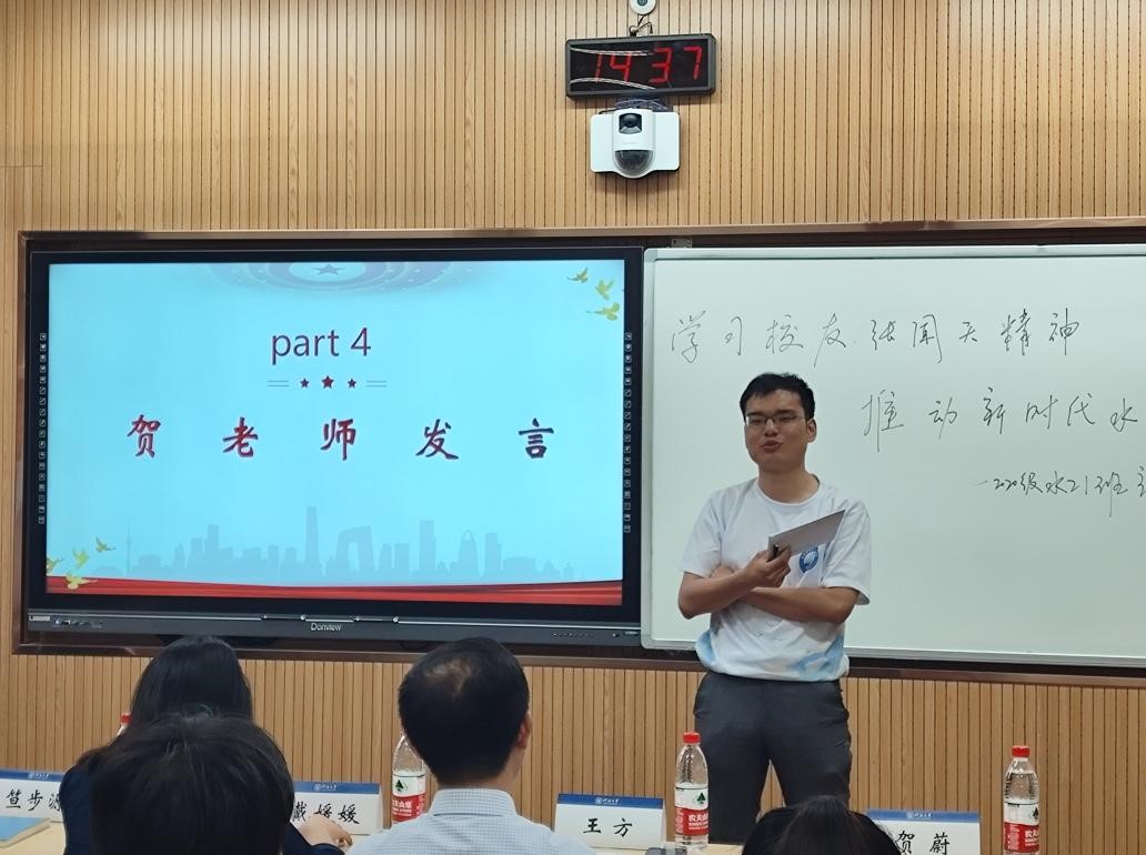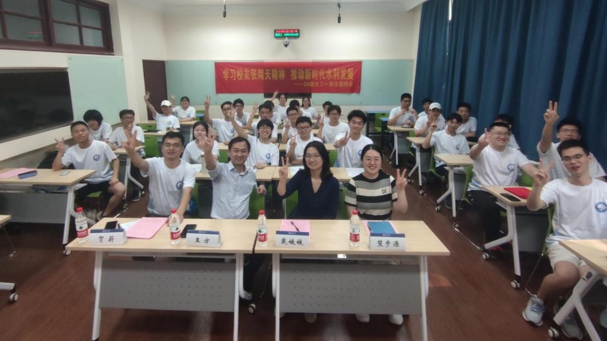2020级水工一班开展“学习校友张闻天精神,推动新时代水利发展”主题班会,校友工作办公室主任王方出席班会,院党委副书记戴媛媛、水工一班班导师贺蔚、辅导员笪步源及水工一班全体同学参加,班长万扬主持班会。