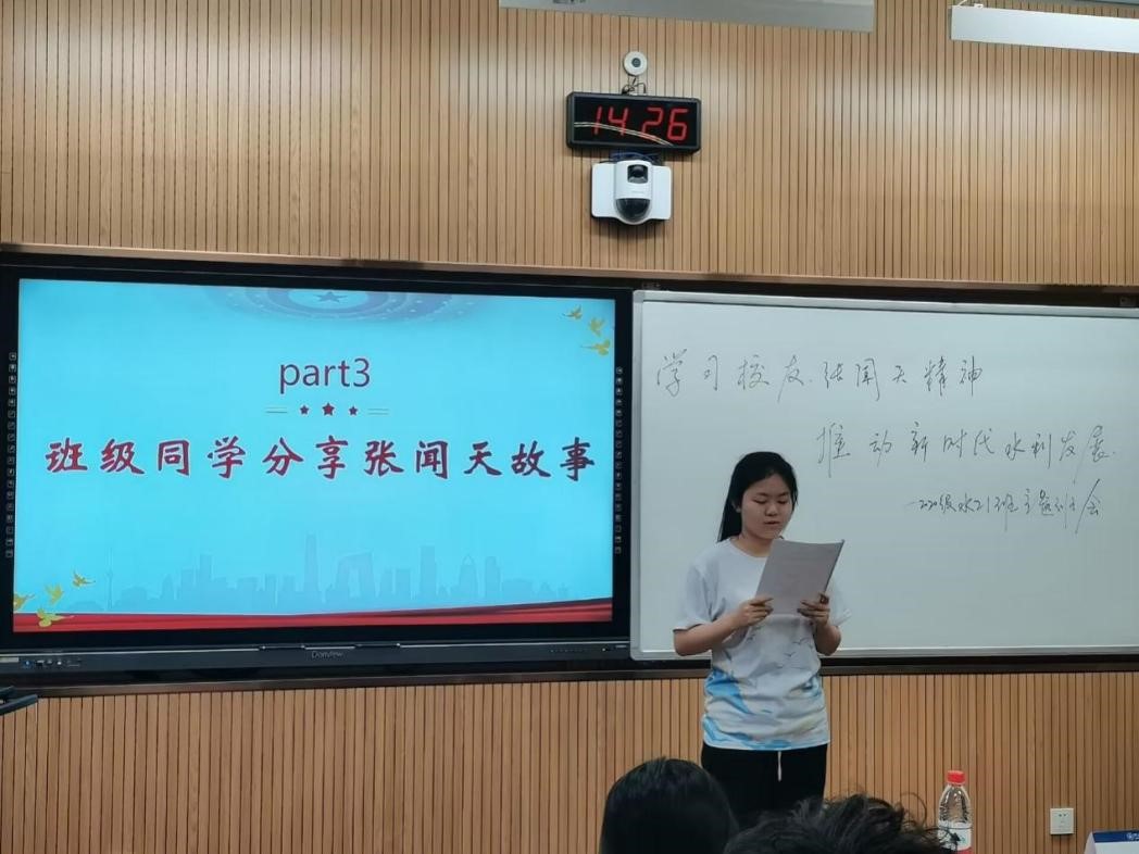 班级代表进行了张闻天事迹诵读和精神感悟分享,通过对张闻天革命生涯的回顾、对子女严格要求的家风等故事,向我们展示了他对党忠诚、无私奉献的信念追求和廉洁奉公、一心为民的精神品质,是优秀的党员、忠诚的马克思主义者、杰出的无产阶级革命家。