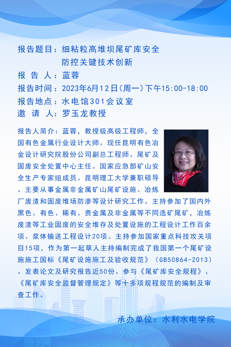 学术报告会 | 细粘粒高堆坝尾矿库安全防控关键技术创新