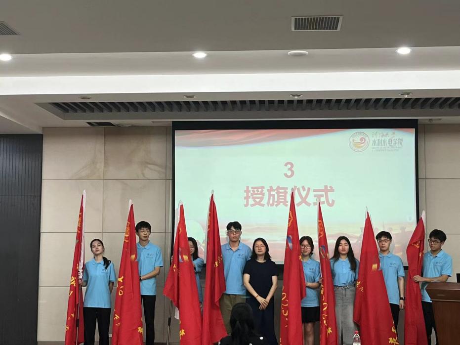 出征仪式上,由戴媛媛为9支校级团队和8支院级重点团队授旗,表达了学院对各实践团队的期望与寄托。