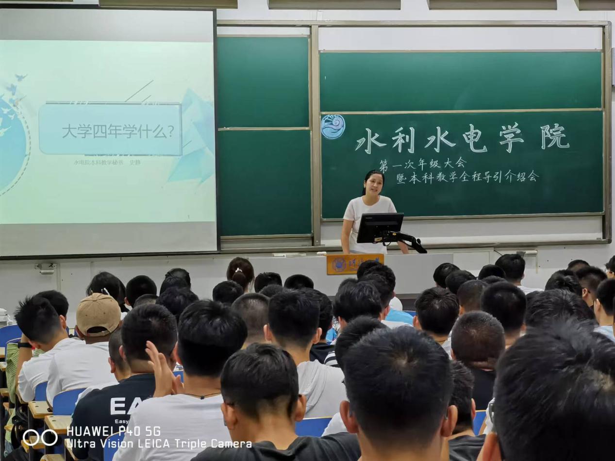帅雨婷老师从大学学习、工作、生活三方面对本院同学做出规范和要求,着重强调了课程考勤、考试规范等问题,以自律和他律相结合,保证学生在校学习质量,提高学习效率,形成良好的学风班风。她鼓励学生积极参与竞赛和学校学院各级组织活动,提升自我综合能力,成为全面发展的河海学子。此外,帅雨婷老师还在大会中特地强调,生命健康是大学生活第一保障,是积极迎接大学生活的前提,同学们应提高个人安全意识,注重个人身心培养,养成良好的生活习惯,开启全新的大学生活。