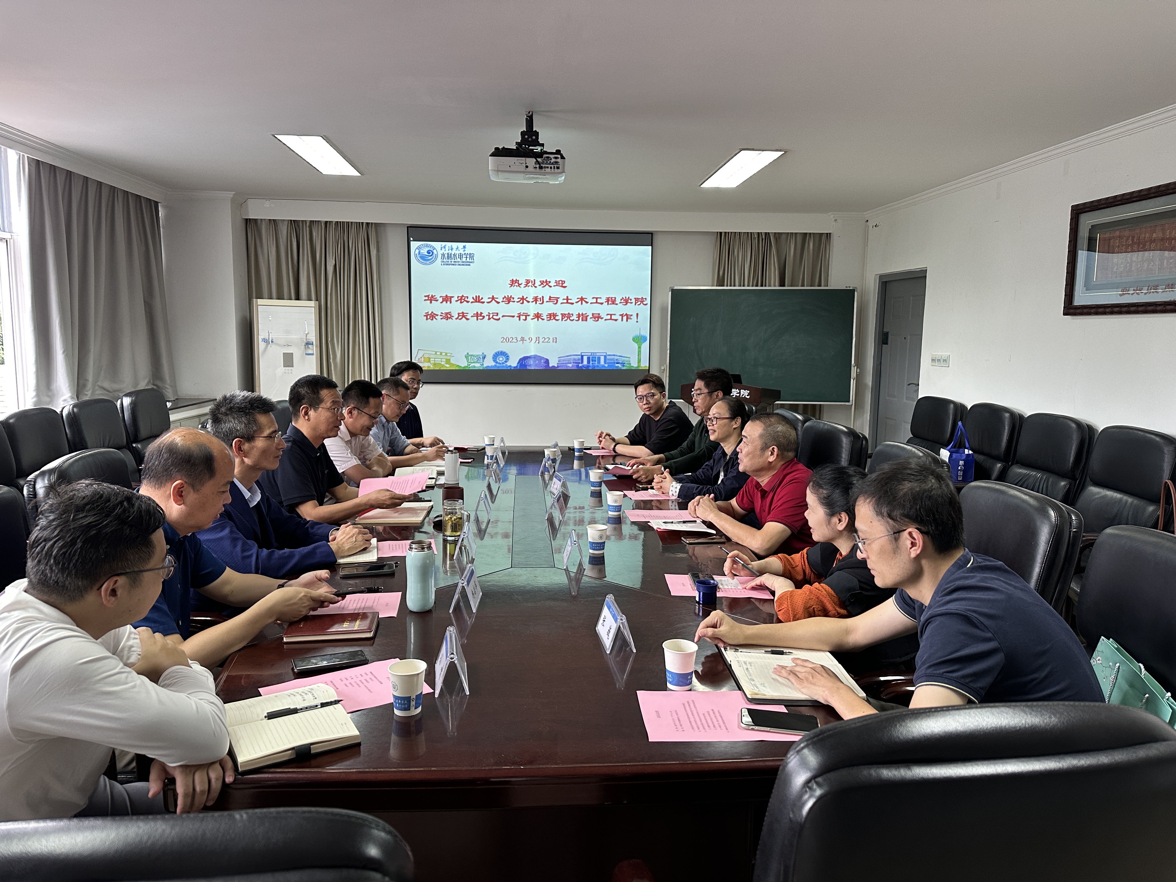 9月22日,华南农业大学水利与土木工程学院党委书记徐添庆、副院长李庚英、副院长韦未等一行6人来av漫画 开展调研交流。学院党委书记娄健、副院长王建、副院长冉启华、副院长赵兰浩以及智慧水利系主任俞晓东、水利水电工程系黄显峰、智慧水利与智能减灾研究所副所长孙啸等参加调研交流会。