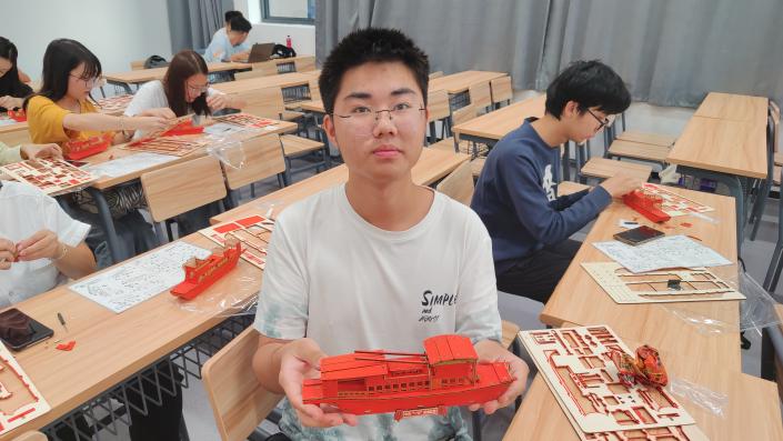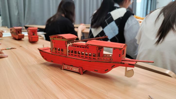 时代变迁,精神永驻。其后各团支部开展了红船模型拼装活动,在拼装过程中,同学们切身体验了古船模型的结构特征和功能特点,也深刻感悟到了“红船精神”,上了一堂生动的党课。“红船精神”昭示同学们,在新时代新长征的进程中,我们不能因循守旧、刻舟求剑,必须勇立潮头、敢为人先,用创新、奋斗、奉献的精神和实际行动永葆党的生机和活力。活动末尾,水工一班团支部的王目旭同学表示:“红船模型看似简单,但是拼装起来却不容易。这就与红船和党的发展历史一样,看似是一条普通的游船,却承载着党和国家的历史记忆,汇聚着中华民族的革命精神。手中拿着拼好的红船,心中满是成就感,本次活动让我对红船精神的内涵有了深刻的理解,从红色基因中汲取强大力量。”