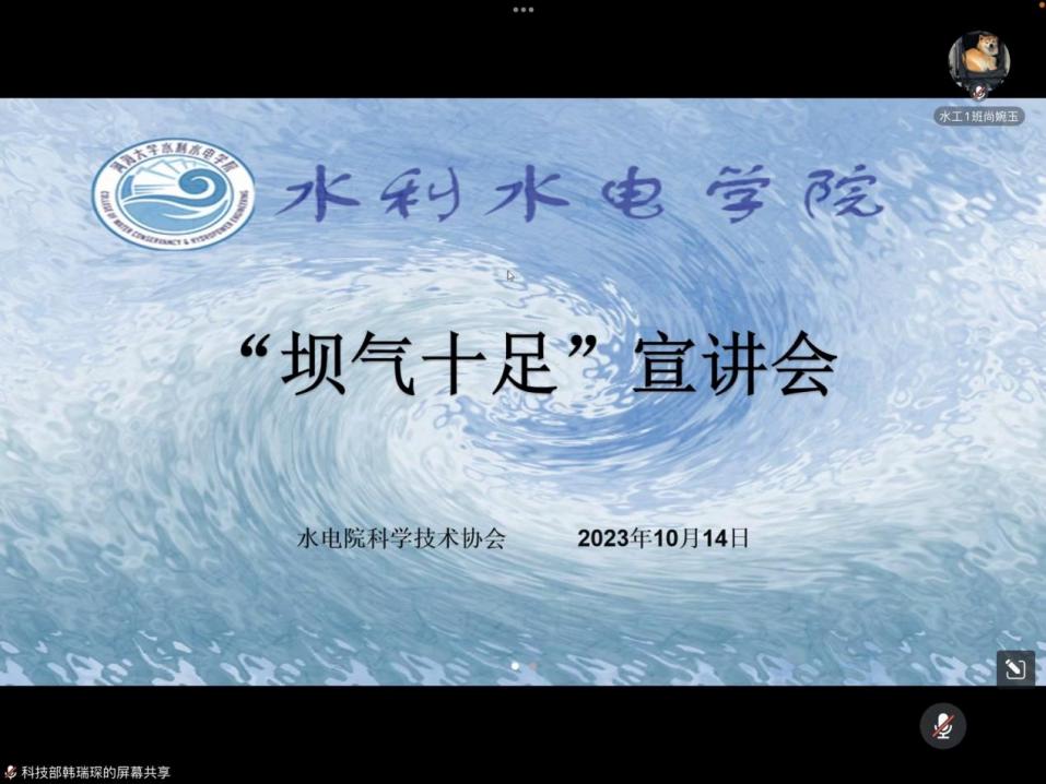 近日,av漫画 举办第十七届“坝气十足”坝型设计大赛线上宣讲会,会议邀请往届获奖团队成员做经验分享,全校各参赛团队、院科协全体成员参加宣讲,各参赛队伍代表参加。