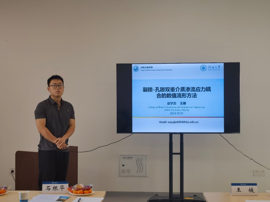 av漫画 徐宇杰博士研究生汇报的题目是“裂隙-孔隙双重介质渗流应力耦合的数值流形方法”。基于数值流形方法基本理论,系统推导了裂隙-孔隙双重介质渗流应力耦合分析中所有的势能项表达式。同时考虑以Biot多孔介质固结理论为基础的直接耦合作用、由裂隙的力学和渗透性质改变引起的间接耦合作用,开发适用于裂隙-孔隙双重介质模型的渗流应力耦合数值流形程序。