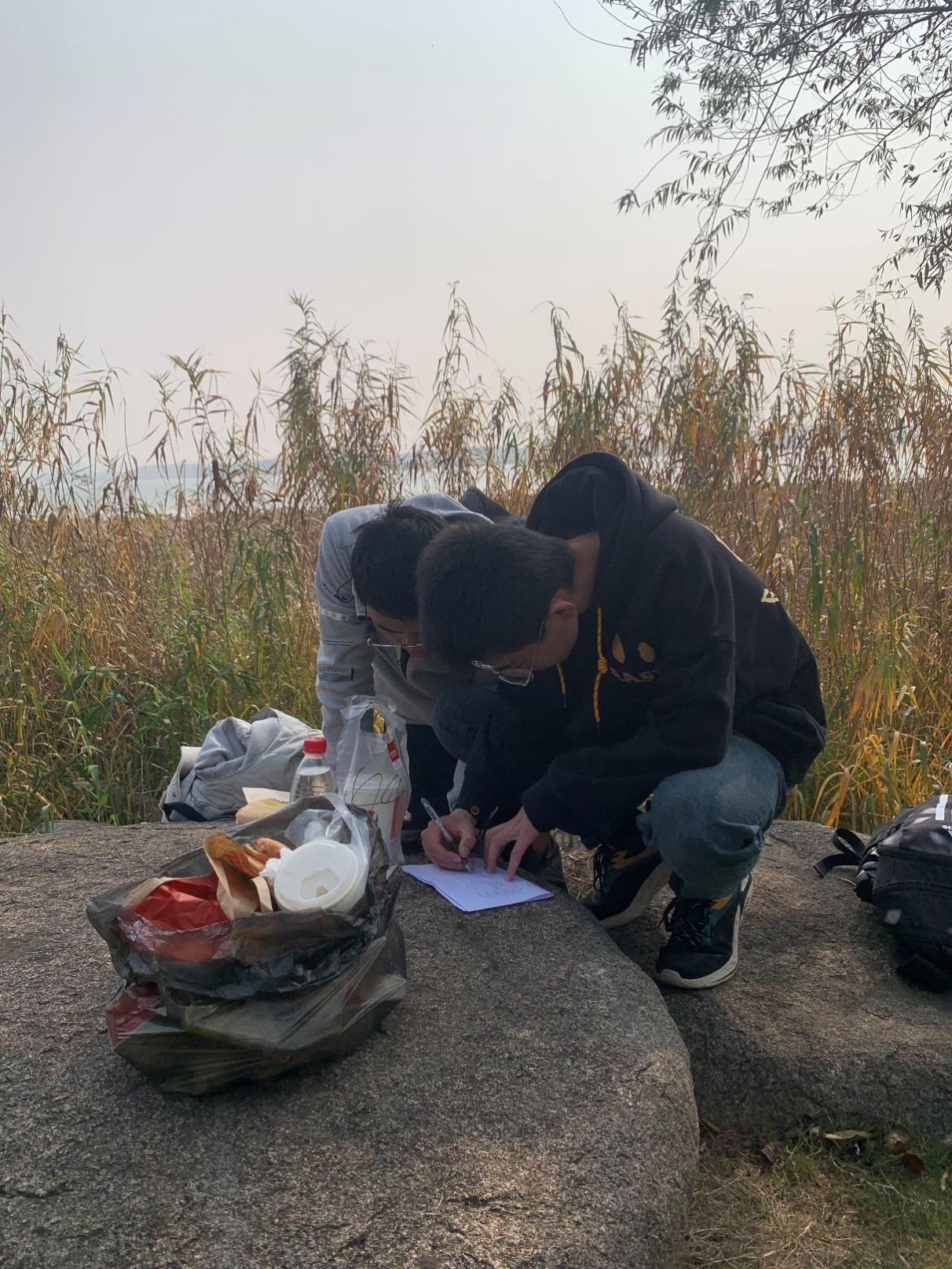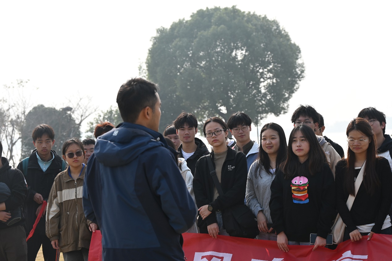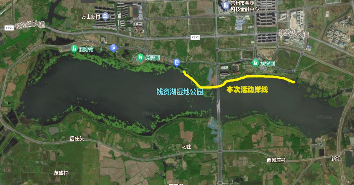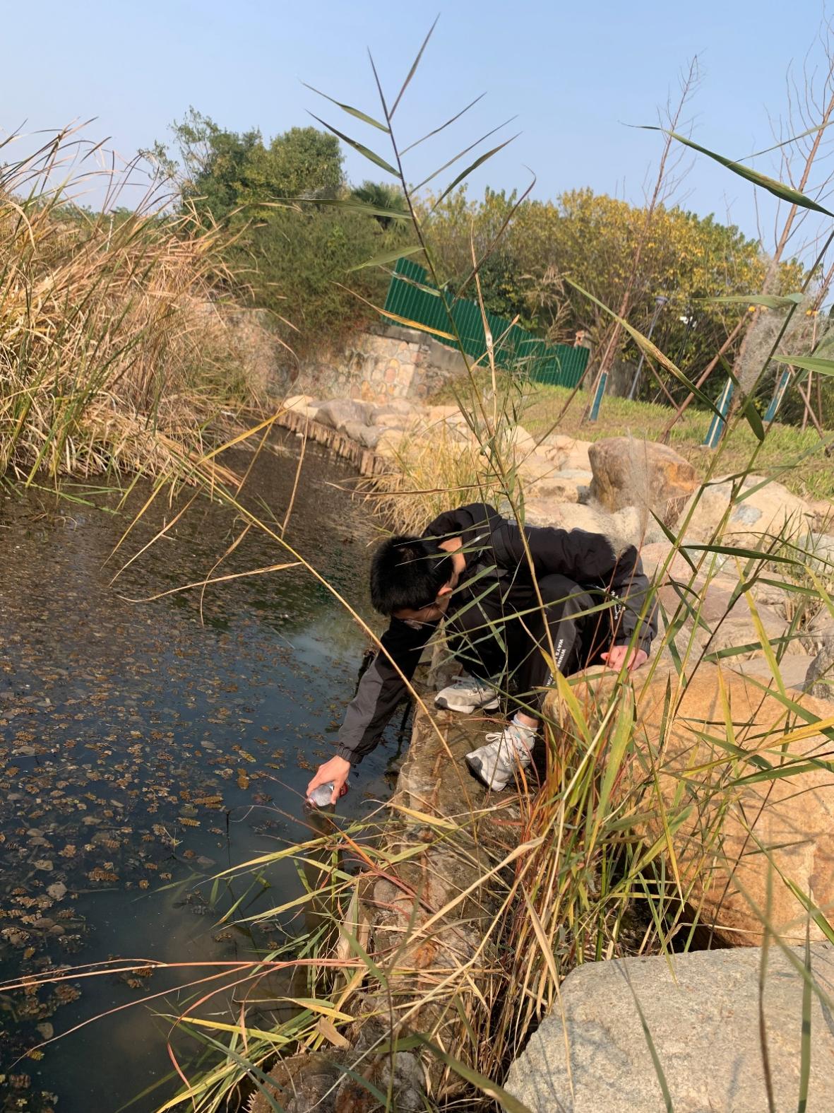 本次活动对钱资湖北岸约2 km范围内进行了水样采集与测试,并开展了湖畔公园的志愿环保行动。活动中,同学们分为8个小组,分区域对钱资湖及附近水域的水样进行采集,同步记录采样点编号、经纬度、时间等信息,并使用专业仪器现场测量水样的温度、电导率值,pH值等指标。同时,同学们对各自区段内河岸和岸上湿地公园的环境进行了清理保护活动。