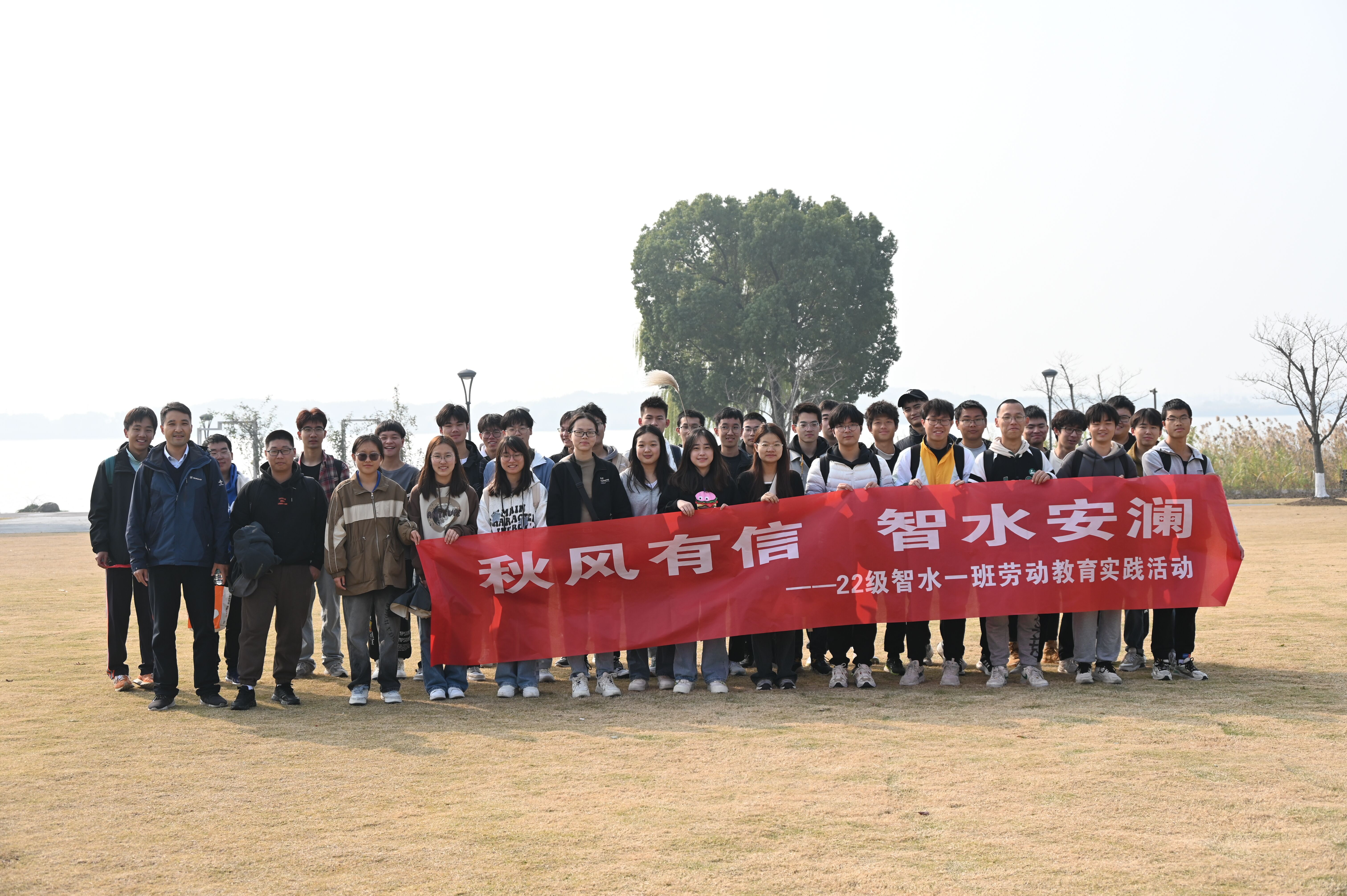 智慧水利专业在常州金坛钱资湖开展“秋风有信,智水安澜”劳动教育实践活动。活动由学院劳动教育课程负责人詹泸成老师组织带领,2022级智水一班全体同学参加了本次活动。