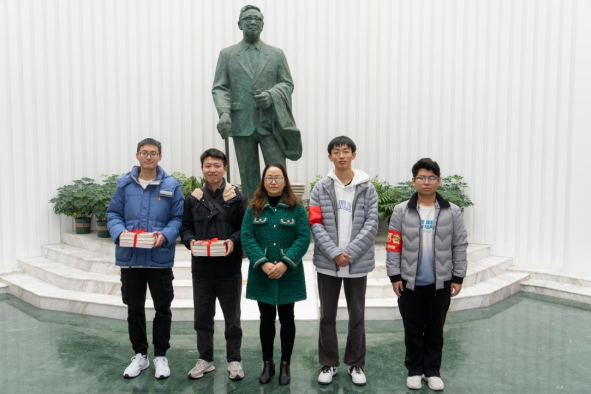 榜样把人生的意义变成鲜活的形象,让远大理想、优良品格、高尚人格在实际行动中生动展现。在华罗庚纪念馆,华小丽科长热情地赠予我们有关华罗庚先生的书籍,让大家充分了解这位自学成才的科学巨匠,为我国数学领域的发展做出的卓越贡献。我们迎着党旗庄严宣誓,双手接过沉甸甸的书本,回想起华罗庚先生说过的:“我要用健全的头脑,代替不健全的双腿。”这种来自心灵的震撼和自强不息的精神激励我们每个人勇毅前行。