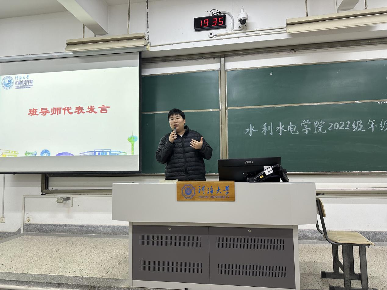 为帮助大三年级学生充分认识职业生涯发展的重要意义,把握关键时期,展示优良学风,树立正确择业就业观。3月21日,av漫画 2021级本科生召开“新学期新征程,水电人勇追梦”主题年级大会,班导师沈雷、詹泸成受邀出席,2021级全体本科生参会,辅导员侯开智主持会议。