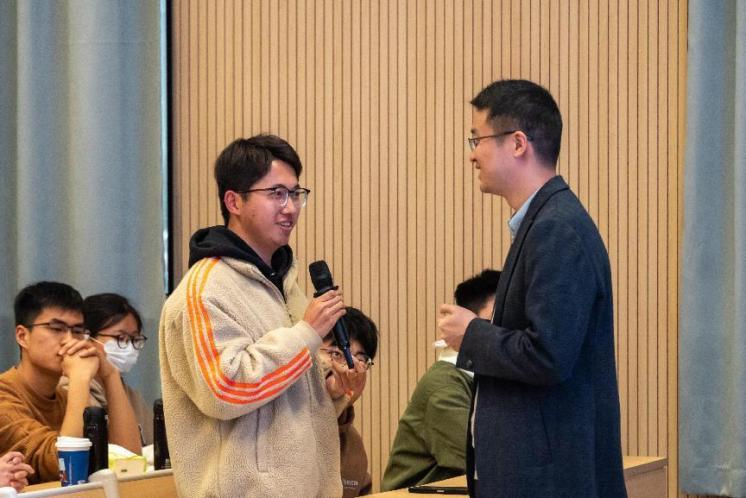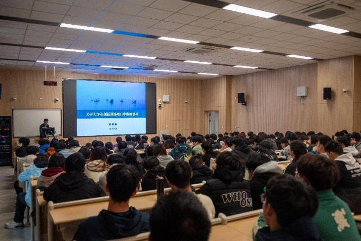 袁赛瑜老师抛出问题:大学生创新训练项目的最终目的是什么?以此激起同学们的讨论与思考。随后,他从个人,社会,科学发展等多个角度阐述创新创业训练对个人发展的重要性,通过创新创业训练项目,同学们能够了解并接触科研项目,能够提前感知研究生、博士生的工作生活,能够获取所研究的某个领域的大量学术知识。