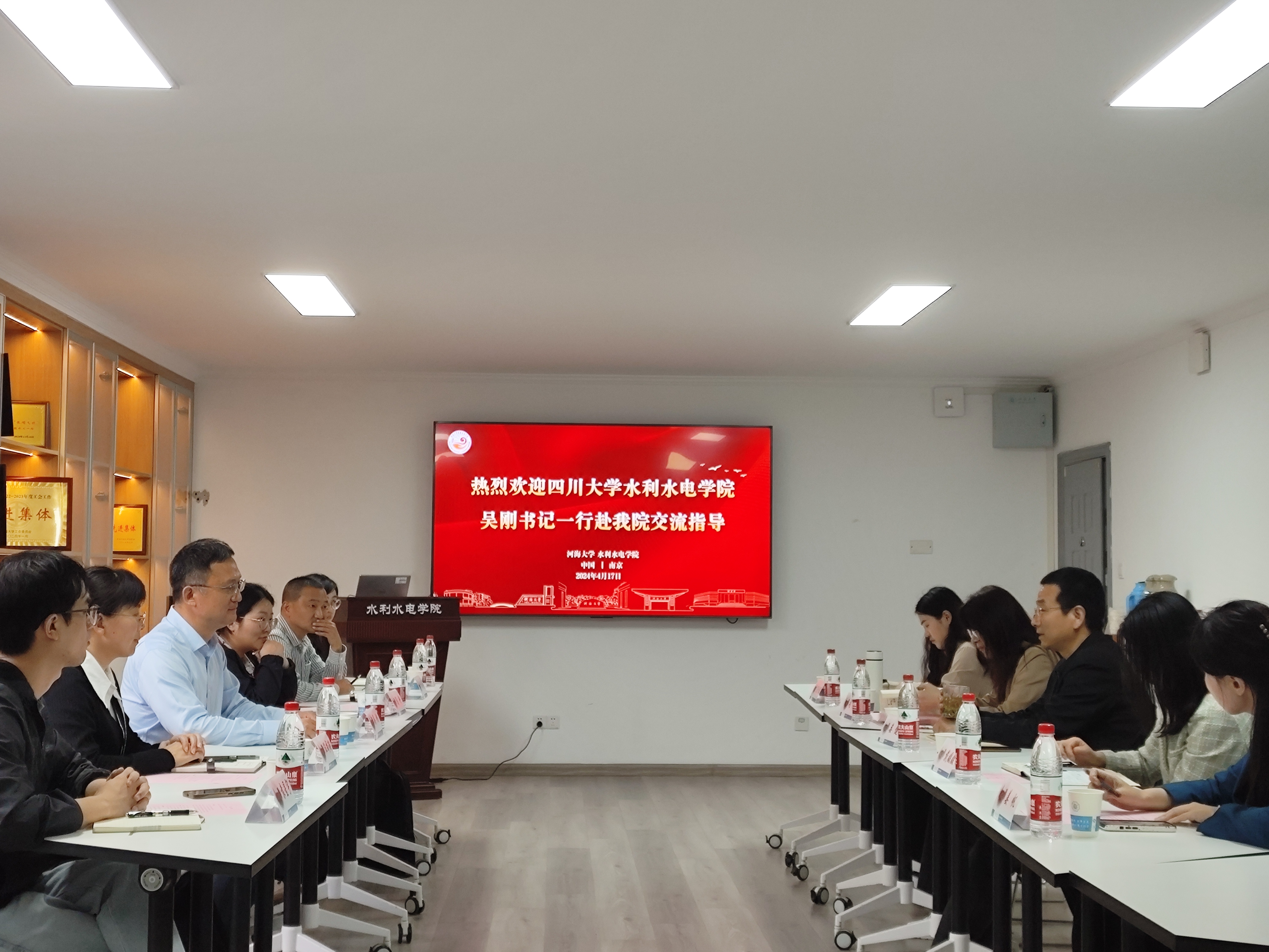 娄健对吴刚书记一行的到来表示诚挚欢迎。他从历史沿革、师资队伍、学科平台、机构设置、代表成果、学生工作、党建工作、杰出校友等各方面介绍了av漫画 的发展历程,并分享了全国党建工作标杆院系建设经验。他表示,希望未来双方能够进一步加强交流、相互借鉴,共同推进党建工作、人才培养、学风建设、学科竞赛等方面的成果交流和工作展示,为新时代水利类人才培养增质增效。