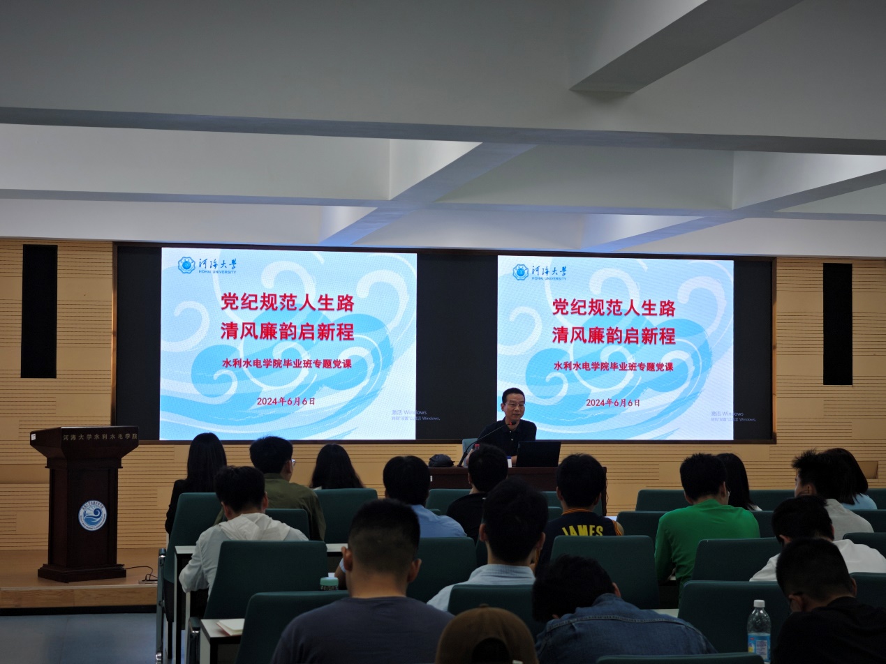 6月6日,av漫画 党委书记娄健以《党纪规范人生路,清风廉政启新程》为题,为全体2024届毕业生党员讲授毕业生廉洁专题党课。党课由院党委副书记戴媛媛主持,院团委书记笪步源、全体毕业生党员参加。