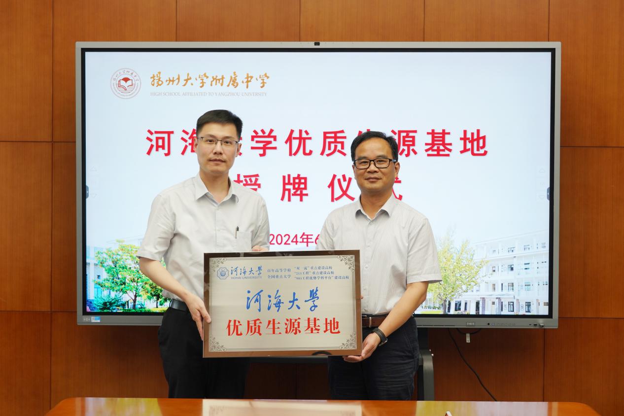 江苏省扬州中学、江苏省邗江中学、扬州大学附属中学校领导出席座谈,并表示“优质生源基地”的挂牌,既是荣誉也是责任,学校将更加努力,为河海大学培养输送更多优秀学子。他们期待通过两校深度合作,共享教育资源,共谋合作发展,拓展基础教育和高等教育的融合渠道和路径,为国家和社会输送更多品学兼优的高素质人才。