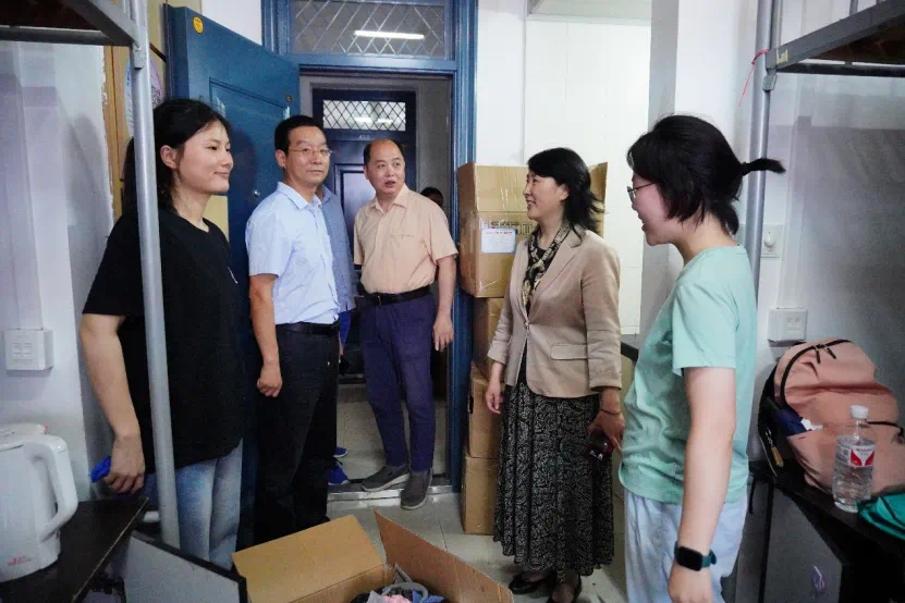 7月4日、5日,av漫画 顺利完成2023级研究生搬迁西康路校区、2022级本科生搬迁江宁校区工作。学院党委书记娄健、院长王媛、副院长冉启华、副院长赵兰浩、副院长俞晓东、党委副书记戴媛媛深入宿舍一线走访慰问搬迁学生。研究生辅导员陈思思、陈辰、本科生辅导员姜帆、22级班导师张博然共同参与。