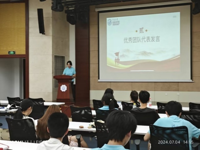 校级团队学生代表孙萌讲述了自己对于社会实践的理解,能够与团队成员并肩作战,共同解决问题,不仅将加深团队成员之间的友谊,更将培养合作能力和创新精神,深入了解所学专业的实际运作,明确自己的职业定位和发展方向。