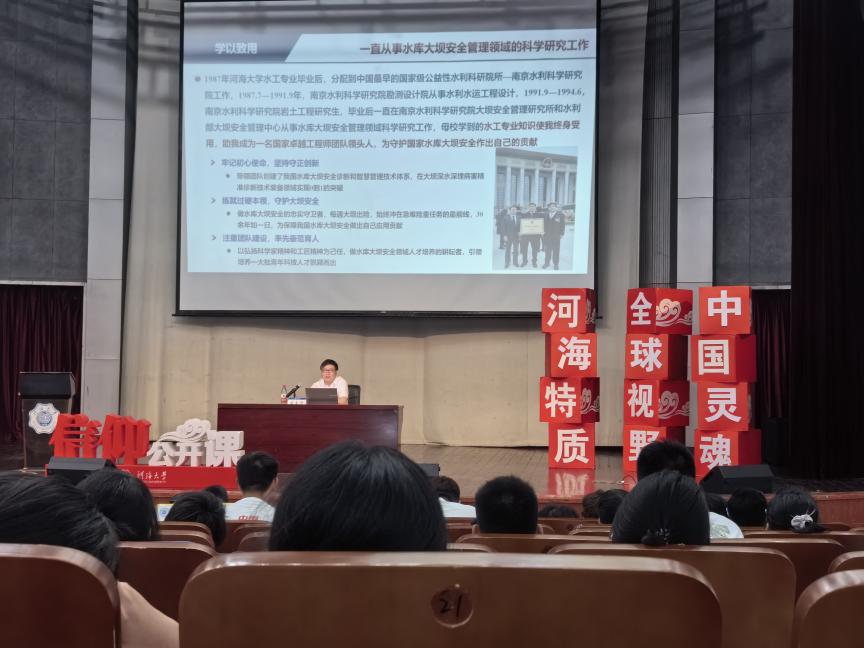 盛金保校友现任水利部大坝安全管理中心总工程师、南京水利科学研究院大坝安全与管理研究所所长,兼任av漫画 教授,领衔团队荣获首届“国家卓越工程师团队”等荣誉称号。分享会上,盛教授以“学以致用,为水库大坝安全保驾护航”为主题,向新生们详细讲述了水库大坝在国家水安全和公共安全中的重要性,强调了保障大坝安全是水利学子的责任和使命。