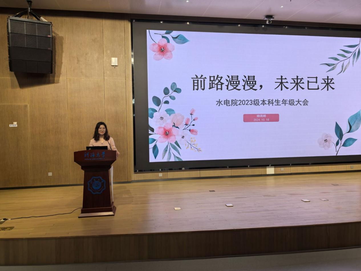 2024年10月18日,av漫画 2023级本科生召开“前路漫漫,未来已来”年级大会。会议由2023级本科生辅导员帅雨婷主持,2023级本科生全体参加。