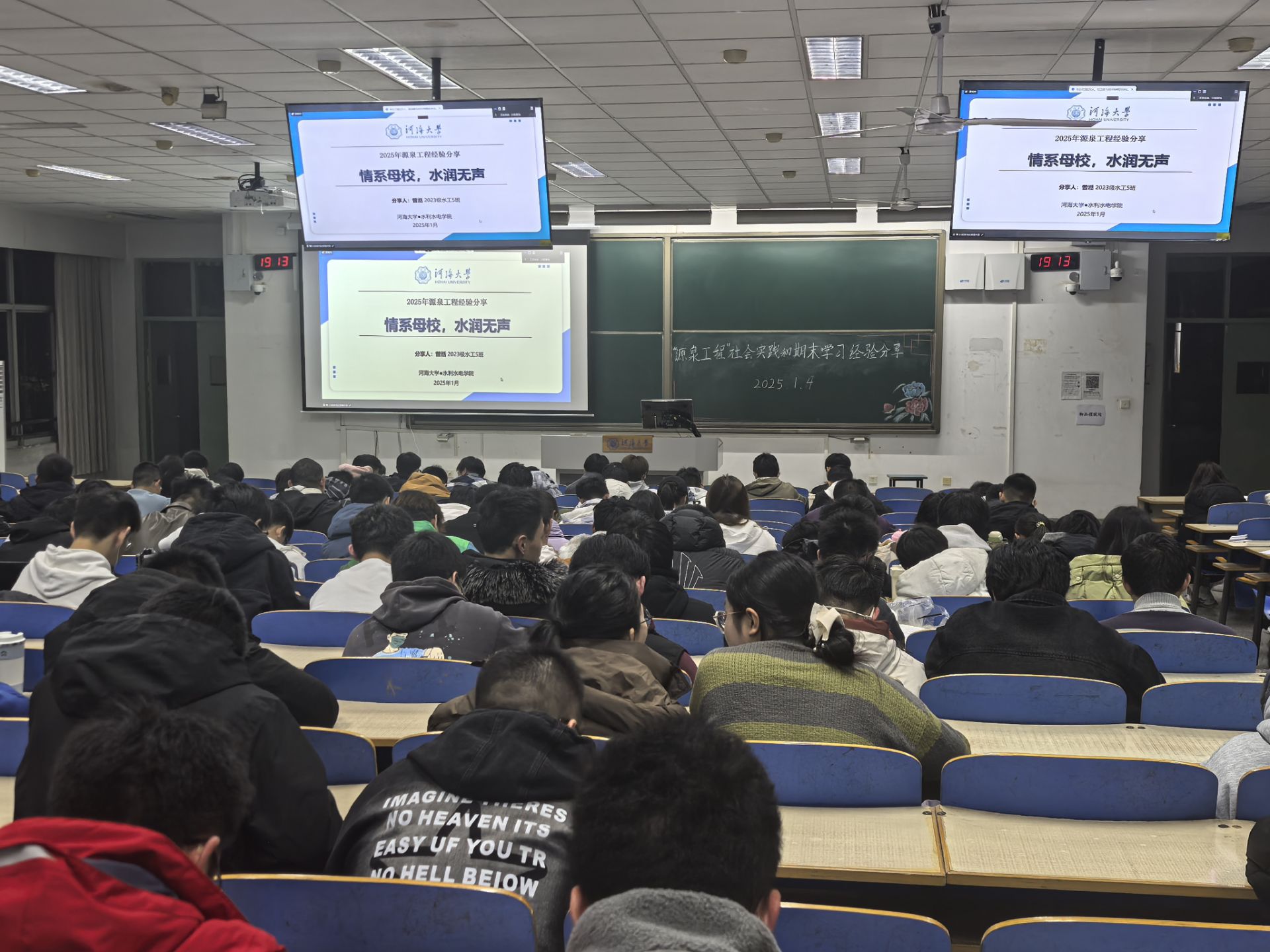 开展“水电优才”学生榜样经验分享会。学院团委书记兼2024级辅导员笪步源,2024级全体本科生、院团委实践部成员参加。分享会邀请22级苗董阳钦、23级于雪琪,朱雨馨,曾湉分别围绕期末学习经验和“源泉工程”社会实践为24级学生提供经验和帮助。