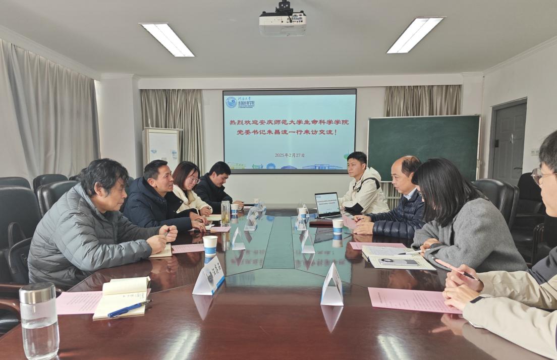 2月27日下午,安庆师范大学生命科学学院党委书记朱昌流一行来av漫画 座谈交流。水生生物保护与水生态修复安徽省高等学校工程技术研究中心主任于道平及其团队成员陈敏敏、连玉喜、汪存石,学院副院长冉启华、副院长俞晓东,院党委副书记戴媛媛,水力学及河流动力学所教师惠辞章,研究生辅导员陈思思以及水力学及河流动力专业博士研究生王昊参加了本次座谈会。