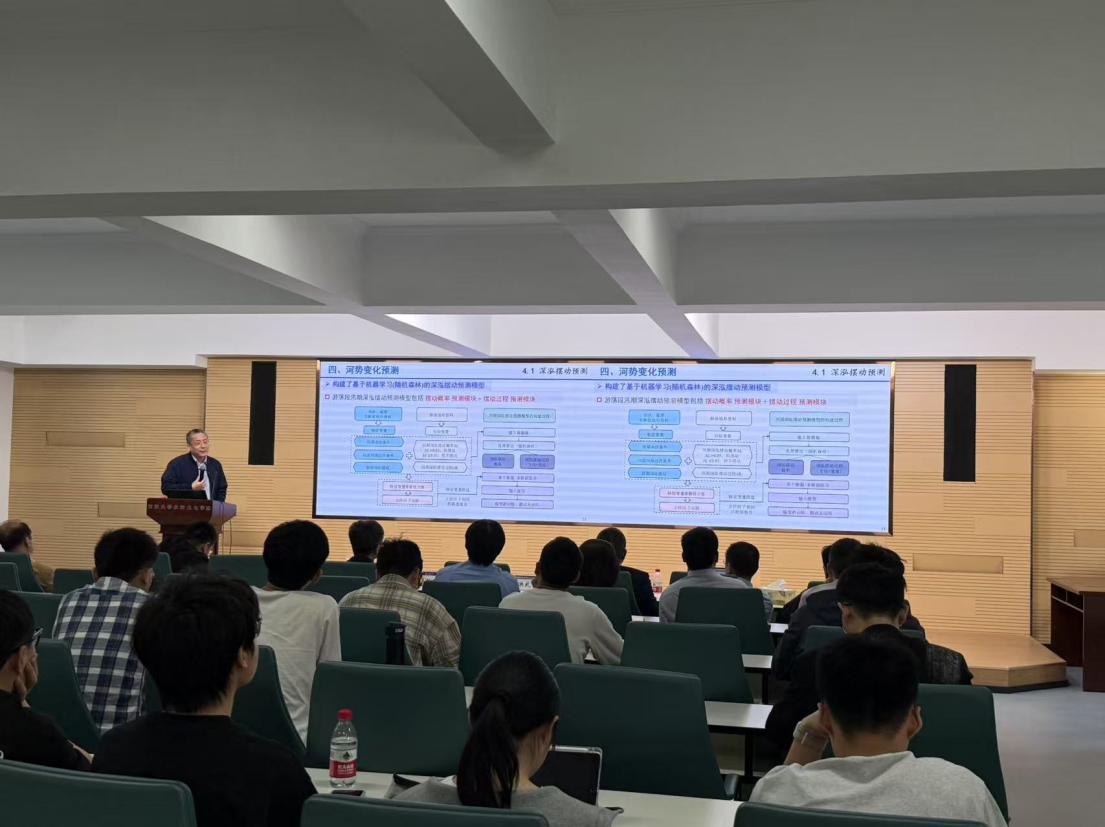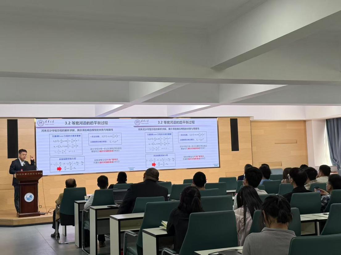在特邀专家汇报环节,清华大学傅旭东教授作《山区河流形貌动力学发展与应用》主题报告,指出山区河流水沙输移机制特殊,提出了统一描述山区—平原河流的阻力公式,揭示了推移质魔术沙效应的物理机制,阐明了地震地质灾害对山前河流演变的系统影响,为山区河流治理提供了新的理论支撑;武汉大学夏军强教授作《黄河下游游荡段河势变化预测技术》主题报告,详细分析了黄河下游游荡段河床演变的复杂特性,提出基于数值模拟的河势变化预测方法,为提升黄河防洪安全与治理能力提出了创新思路;四川大学张建民教授作《高坝工程多股多层组合消能技术与应用》主题报告,针对大流量集中泄洪条件下的复杂流态控制与消能防冲问题,提出了新型多股多层组合消能技术,为高坝工程安全运行提供了有效保障;浙江大学郑飞飞教授作《城市入河雨水管道的复杂水动力过程研究》主题报告,结合模型实验与数值模拟,系统揭示了城市洪涝防控中的关键水动力机制,为提升城市排水系统抗灾能力提供了理论依据。随后在青年学者交流环节,av漫画 贺蔚教授和蒋晟教授分别进行汇报,并与在座专家学者进行了交流与探讨。